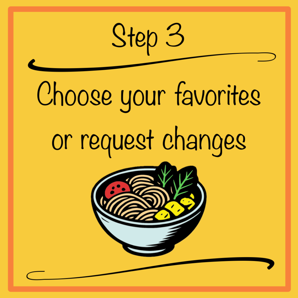 Your Personal Meal Planning Concierge Cooking that fits into your lifestyle instead of being a chore Choose your meal plan! Autopilot your cooking Feel good. Save $. Get Fit. Eat well. Why it works Because everything is tailored to you—your habits, budget, kitchen, pantry, and tastes—and improves every week. Click here to tell us your preferences! How does it work? We use our service ourselves. So we know it all comes down to $, convenience, and infinite customization. You cook. We curate.Over 100,000 recipes to find the perfect ones just for you! Still not sure? We’re all ears! 🙂 Get in touch